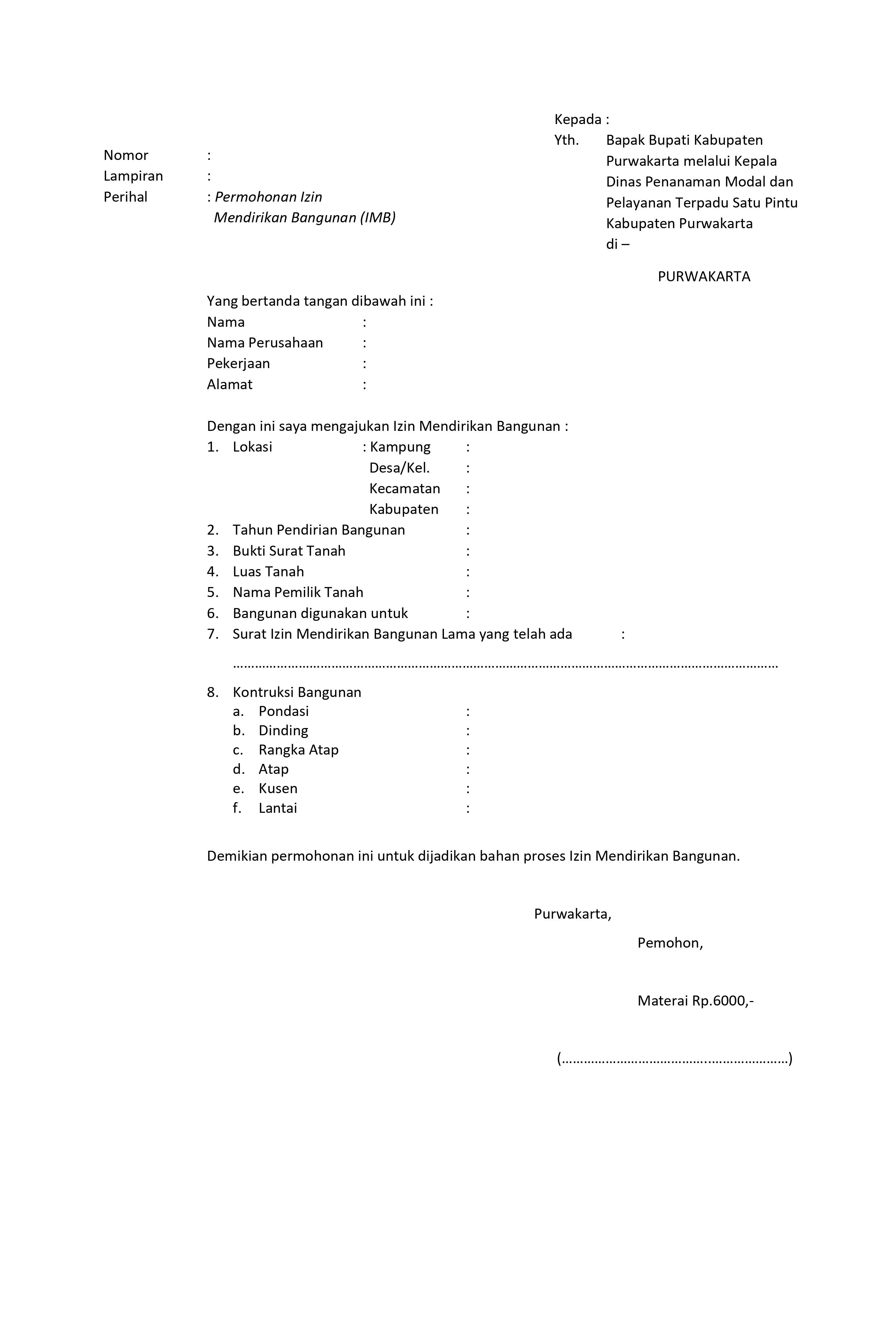 Nah sekarang sudah tahukan pentingnya dan tata cara urus IMB sebagai bukti kepemilikan atas sebuah properti Pastikan dokumen lengkap sebelum membeli rumah berikut terlampir beberapa surat contoh permohonan IMBSurat Permohonan IMB dengan Informasi Properti Surat Permohonan IMB dengan Rencana PembangunanSurat Permohonan IMB dengan Penjabaran SingkatSurat Permohonan IMB dengan Format Ringkas .... Baca selanjutnya
